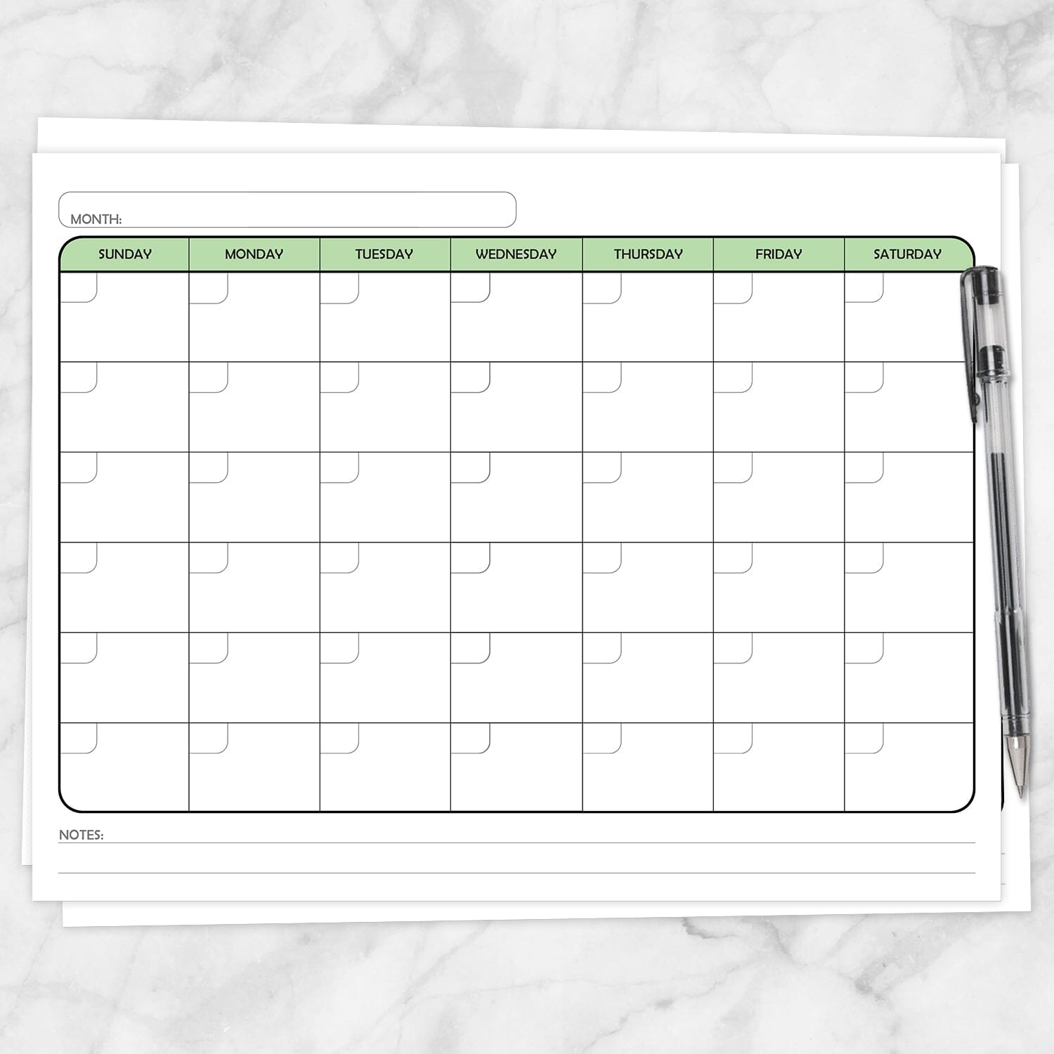 Modern Blank Monthly Calendar Green, Full Page Printable at